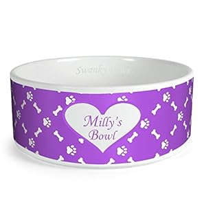 Swanky Paws Personalised Paw & Bone Pattern Custom Design Dog Bowl Cat Pet Food Dinner Dish (Small, Blue)