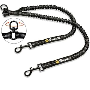 Sweetie Dog Lead Splitter – Dual Shock Absorbing Bungee Double Leash Coupler – Perfect Leads for Walking 2 Small to…