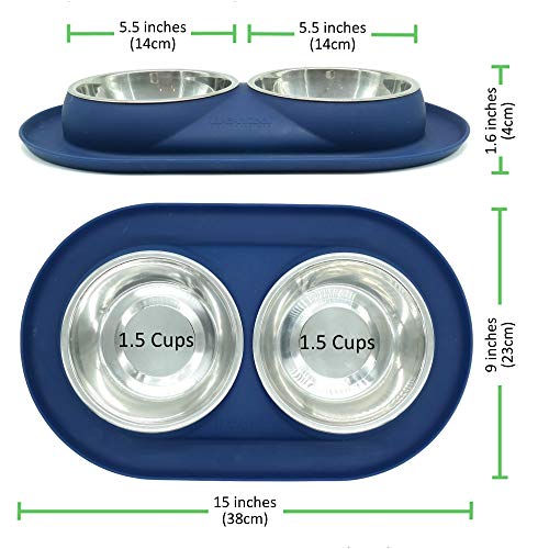 COMPLETELY FOOD SAFE for your pet and 100% BPA Free. Includes two quality 400ml total capacity stainless steel dog bowls Each and every measuring 5.5″ diameter x 1.5″ height.