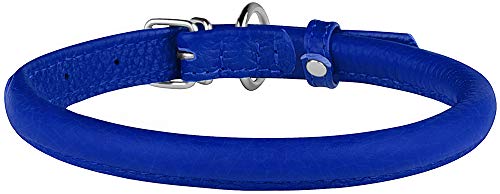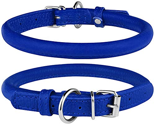 Rolled dog collar is made of soft full grain genuine leather with durable steel buckle and ring. Our collars might fit small, medium and large dogs.