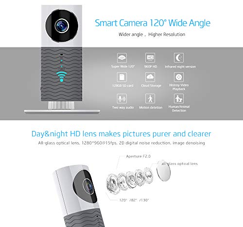 120° Wide Angel Lens with 1280*960 resolution. Improve Micro Max 128GB SD storage(optional) and cloud storage