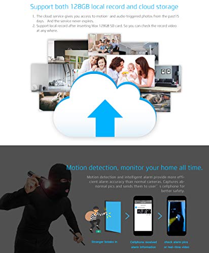 Precise Motion Detection : you’ll get 3 alarm pictures even without cloud storage or SD card ,at the same time as for other cameras ,you should insert memory card or use cloud storage to get the alarm message.