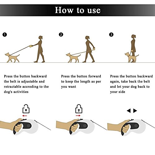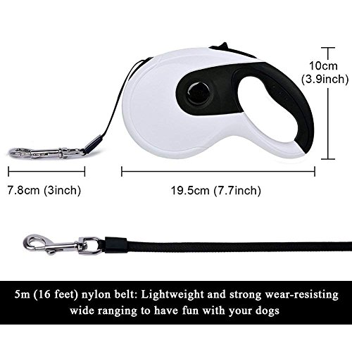 Sturdy and Durable: Made of Eco-friendly material nylon & ABS, the casing of this retractable dog lead may be very strong. With polyester and strong spring inside, this dog lead provides a long term service.