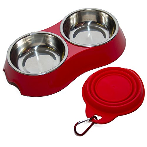 No more germy pet bowls! Our handy double feeder provides 2 premium stainless-steel bowls designed to withstand bacteria. Sized for small dogs cats & your puppy. Bonus Shuttle dish included. Tired of smelly grimy cat food dishes or? You’ll be able to love these easy-clean bowls. Made of premium stainless steel they resist bacterial growth. Plus they are dishwasher protected so it’s easy to keep them sanitized. Even their sturdy plastic stand is simple to disinfect: Just wipe down the smooth outer surface of these bowls. Perfect for Small Pets & Smaller Spaces Complete with non-skid frame your 2-bowl set measures 10″ x 5″ x 2″ high. It fits neatly in compact spaces may not tip over & stays out of the way. Indoors & Out You’ll be able to Have Feeding Flexibility Each gleaming stainless-steel bowl holds up to 150 ml: For a single pet use 1 bowl for food & 1 for water For 2 pets use both bowls for food OR water OR both For Errands & Shuttle Count on Our FREE Collapsible Dish Out & about with your animals? Now you’ll be able to keep them fed on the go – at the dog park walking trail anywhere. Just use our bonus plastic Shuttle bowl. This durable dish: Collapses to slot in your tote or purse Expands instantly to hold food & treats Attaches to your water bottle with its handy latch (included) Clips via D-ring (included) to a leash backpack or stroller deal with Washes in sink or dishwasher Your Satisfaction Is Guaranteed… And So Is Your Pet’s! Order your Pet Feeder now. Plus stock up for all of the pet lovers on your gift list!