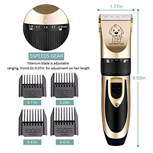 Professional Electric Cat Dog Grooming Clippers Kit with 4 Comb Cleaning Brush Scissors Nail File Claw Hair Trimmer with Low Noise