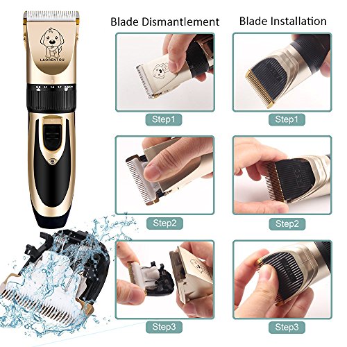 Professional Dog Grooming Clippers – Sharp titanium blade combining with the ceramic movable blade for efficient and long term cutting. It at all times keeps sharp and wear-resisting,and will not cause allergic to skin.