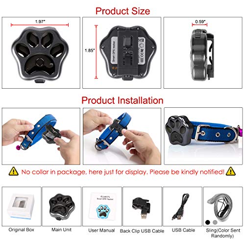 SMALL, LIGHT, SPLASH PROOF — Mini Tracker specially for Pet. Weighing just 45 grams and secure by a durable case, GOLOPHY Pet Dog GPS Tracker is small and easy to attach to any pet collar. IP66 waterproof design, dust-proof, shockproof, no wish to worry about rainy days.