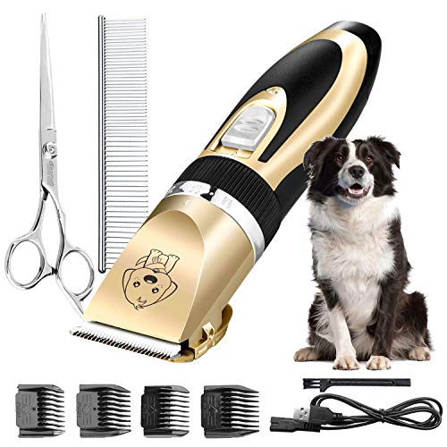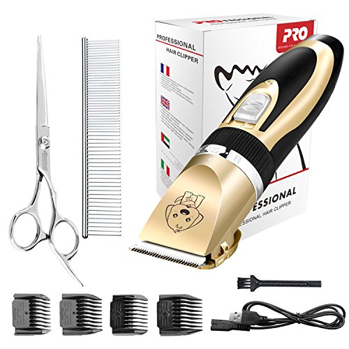✔️ Dog Grooming Clippers Kit: 1×Pet clipper (including a rechargeable battery); 1×USB connected; 1×Cleaning Brush; 4×Comb Attachments(3-6-9-12mm); 1×Stainless Steel Scissors; 1×Stainless Steel Comb; 1×User Manual