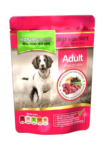 Natures Menu products are designed to deliver your pet’s requirements from naturally balanced raw materials. This implies we do not use the chemicals, additives or preservatives frequently found in over-processed pet foods. Beef and tripe is perfect day-to-day feeding for adult dogs and is derived with the natural advantage of your canines favourite food fresh tripe, dogs like it!
