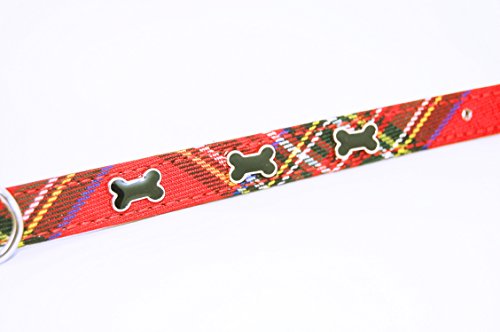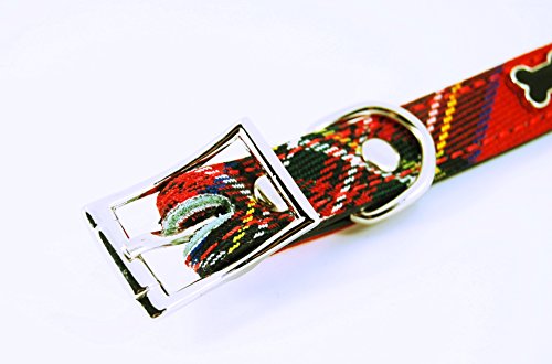 Beautiful new Pet Palace Tartan “Scottie Dog” Collar, for pets proud in their heritage. The snazzy tartan design leather PU collar features super cute black doggy bone decorations that any pet would be proud to wear. The collar is manufactured from strong durable man made leather with a soft to the touch tartan cloth fabric covering. SIZE GUIDE: EXTRA SMALL Length 30cm Width 1.5cm Thickness 0.4cm Fits neck: 18cm – 23cm (7-9 inch) approximately SMALL Length 40cm Width 1.5cm Thickness 0.4cm Fits neck: 29cm – 35.5cm (11.5-14 inch) approximately MEDIUM Length 45cm Width 2cm Thickness 0.4 Fits neck: 31cm – 39cm (12.2-15.3 inch) approximately LARGE Length 55cm Width 2.5cm Thickness 0.5cm Fits neck: 38.5cm – 48.5cm (15-19 inch) approximately The EXTRA SMALL size is 30cm long (12inches) and made to suit a 7 to 9 inch neck. Collar width is 1.5cm and thickness is 0.4cm. Do not fail to remember to measure your pet’s neck size before choosing a collar. And remember that to leave an inch or so for comfort. Any question – just ask. The collar will fit any dog breed with those neck measurements but is especially suited to West Highland Terriers, Scottish Terriers, Border Terriers and the like FREE RETURN FOR SIZE EXCHANGE IF YOU ORDER THE WRONG SIZE. Contact us throughout the Amazon messaging system to arrange an instantaneous exchange for a bigger or smaller size. Also to be had in LARGE, MEDIUM and SMALL and LEADS also to be had