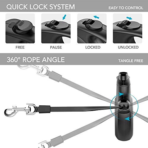 Small Leash Suitable for Dogs Under 26 lbs:ABS material more durable, plated zinc-alloy clip , no tangling up.Instant-stroke braking system guarantees high safety all the way through walks.