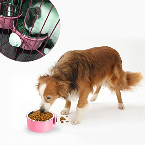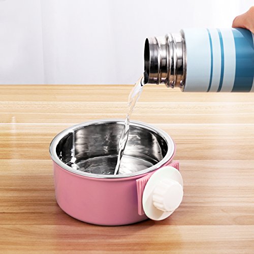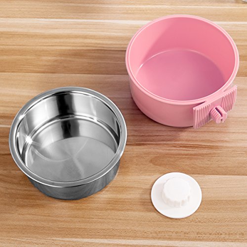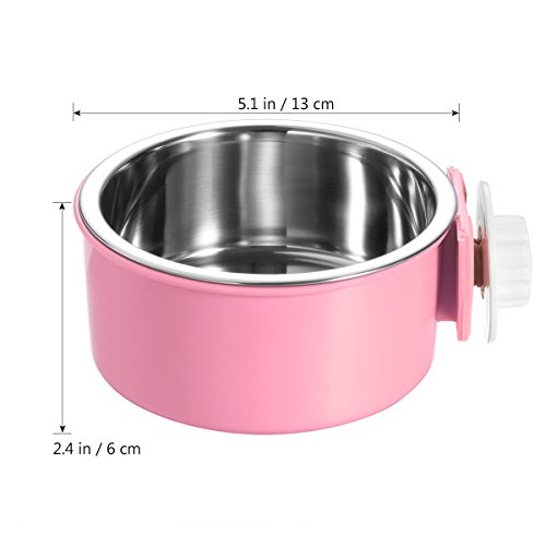 1 * 2 in 1 Stainless Steel Pet Hanging Cage Dog Bowl Small Animal Food andamp; Water Bowl (Pink)