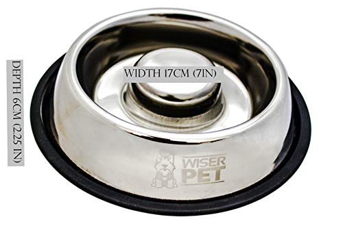 Wiser Pet Slow Feed Dog Bowl | Healthy Eating Anti Gulp/Gobble Hygienic Stainless Steel | Anti Bacterial and Chemical…